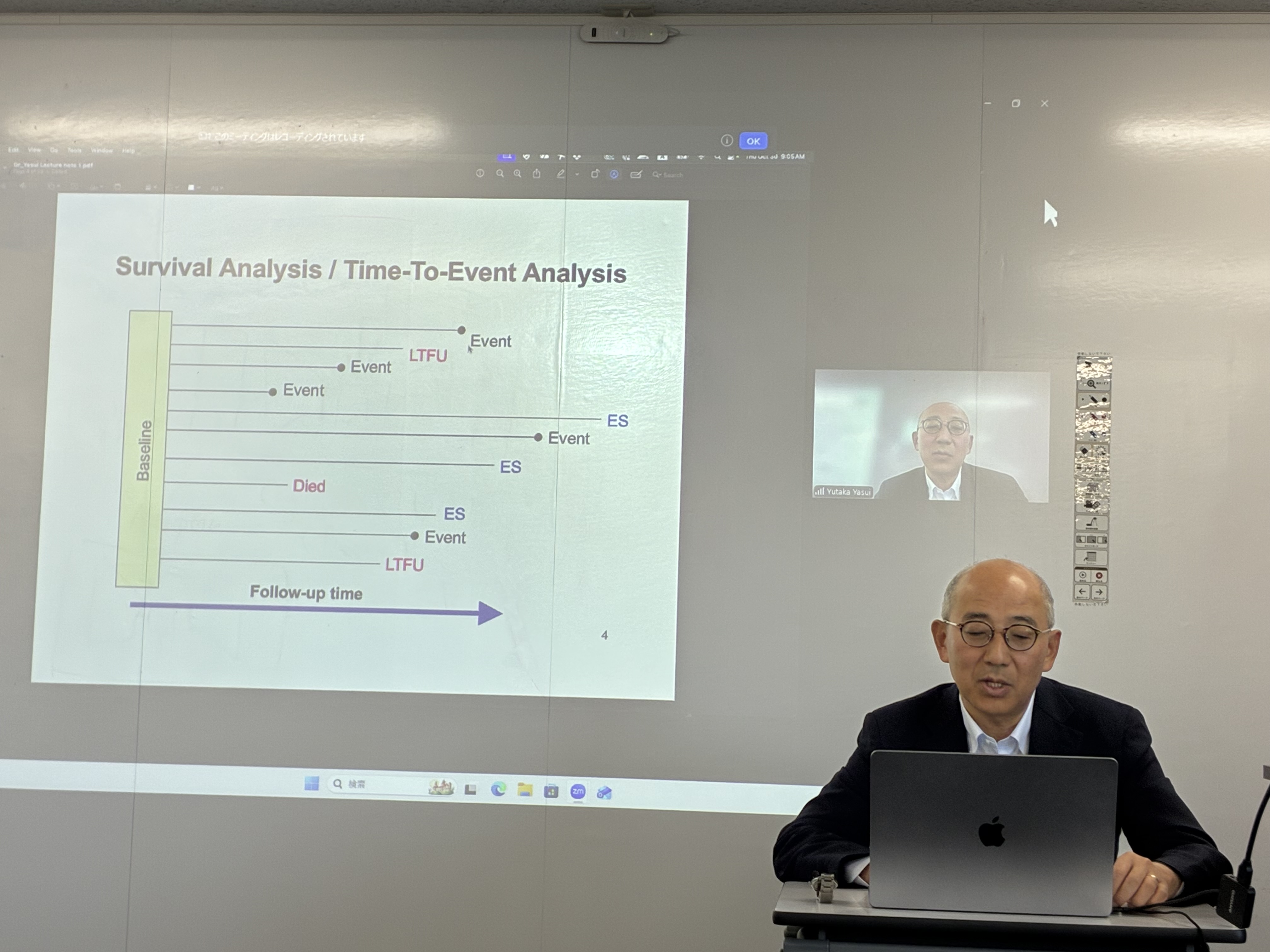 2025年10月30日、米国・セントジュード子供研究病院(St. Jude Children’s Research Hospital,Memphis,TN,USA)のProf. Yutaka Yasuiが本学を訪問しました。Prof. Yasuiは大学院データサイエンス研究科の講義「統計的モデリング実践論」にてCox比例ハザードモデルについてゲストとして講義を行われ、小児がん生存者のデータを探索・分析・共有するためのデータポータルであるSt. Jude Survivorship Portalの使い方について解説されました。なお、データサイエンス・AIイノベーション研究推進センターは、データサイエンス学部の和泉志津恵教授の推薦により2024年4月からProf. Yasuiに客員教授を委嘱しています。