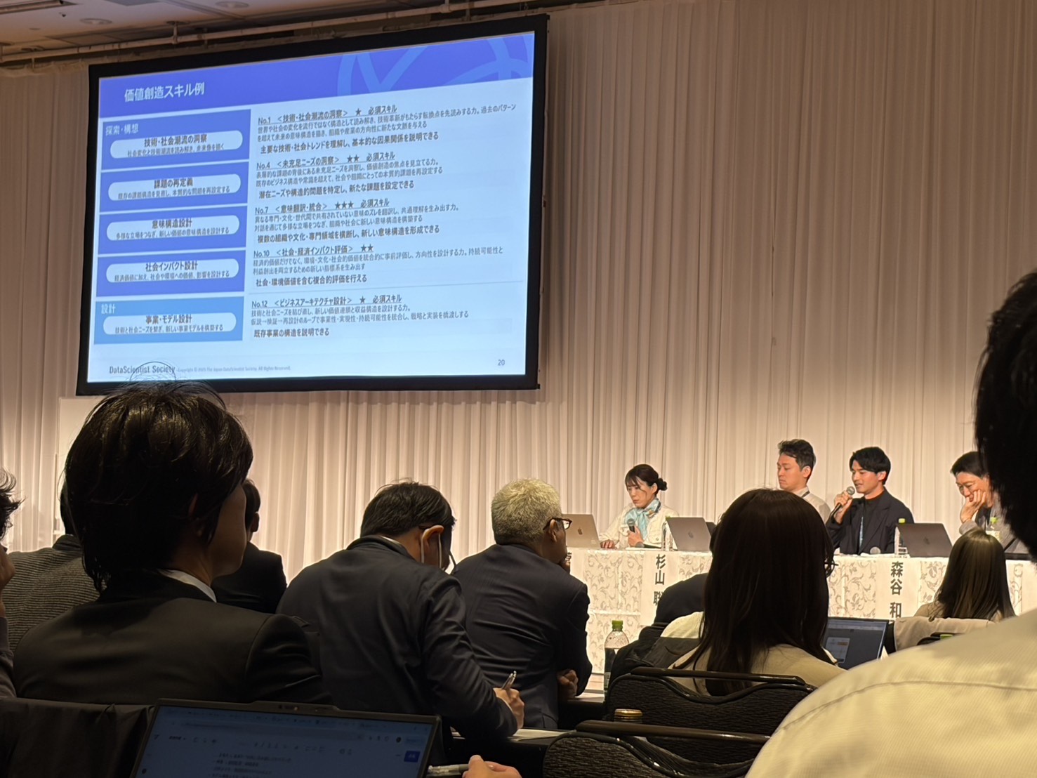 2025年11月25日(火) に開催されたデータサイエンティスト協会の12thシンポジウム(https://www.datascientist.or.jp/symp/2025/)にて、本学データサイエンス学部1期生の森口翼さんが同協会のスキル定義委員会のメンバーとしてスキル定義委員会セッションに登壇し、「データサイエンティスト スキルチェックリスト ver.6」について説明を行いました。