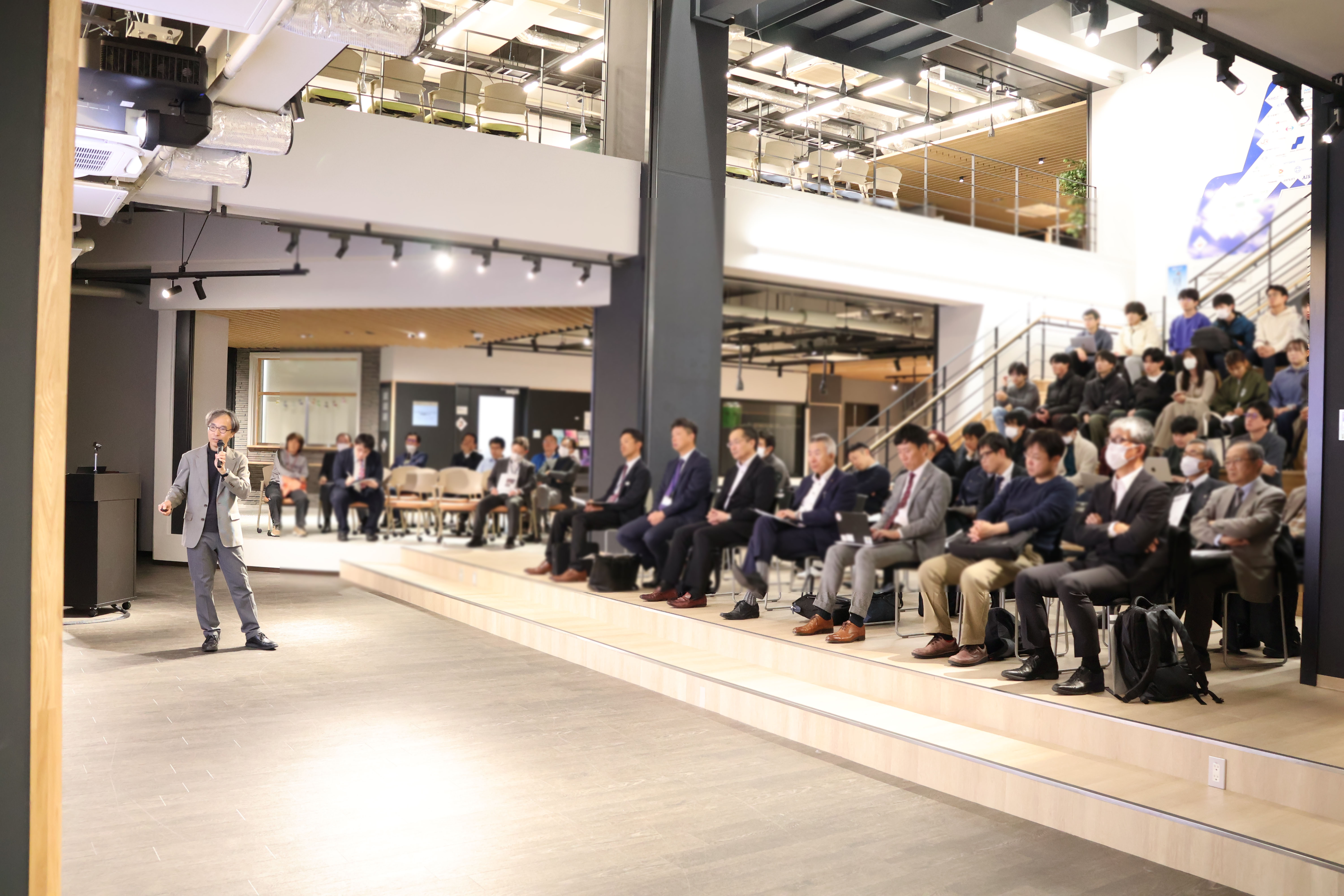 12月2日、彦根キャンパスのイニシアティブ棟にて、地元彦根商工会議所と協働で生成AI活用講演会を開催しました。