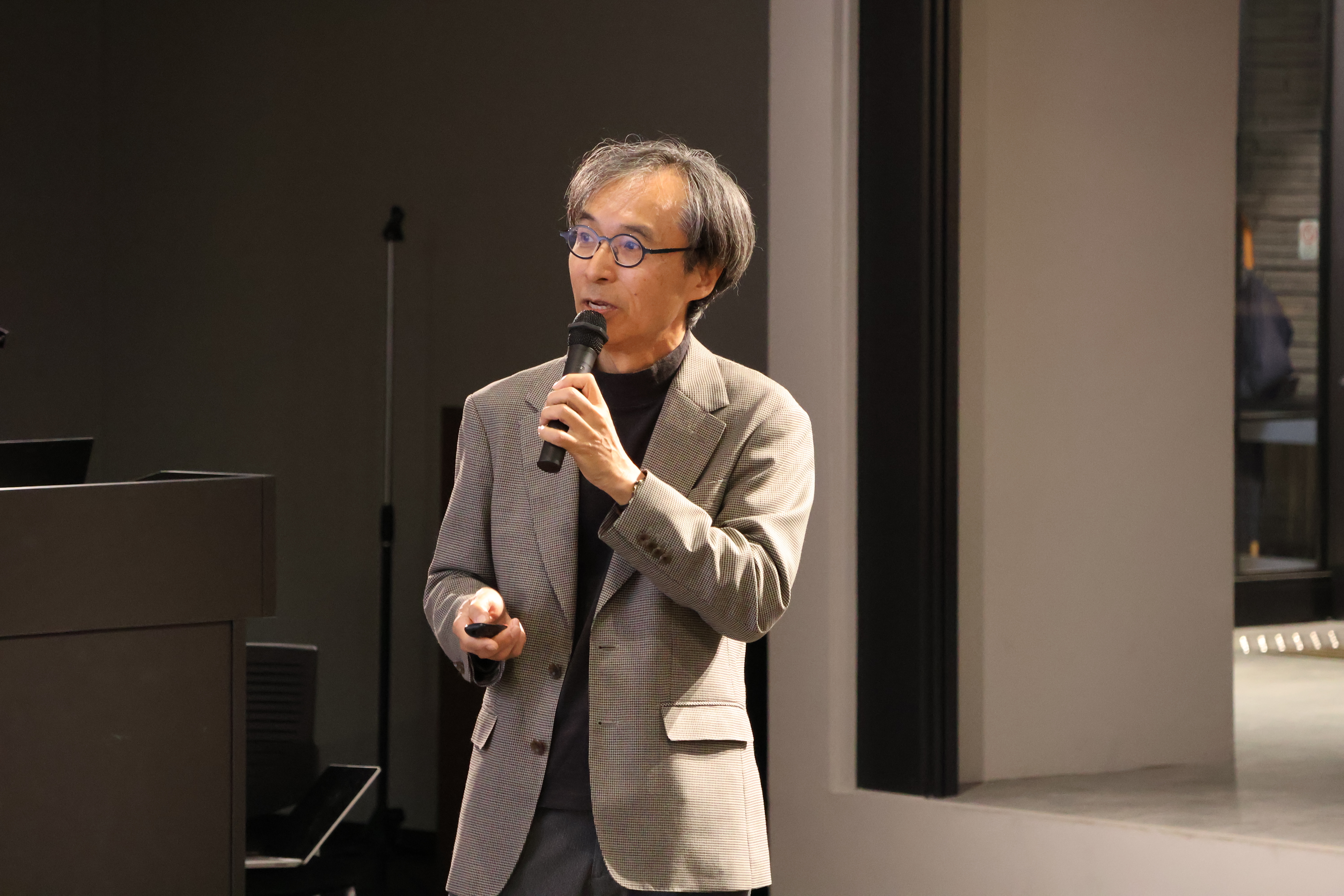 講師の深谷良治 DS・AIイノベーション研究推進センター長からは、 「人とAIの共創が生み出す新しい価値 ~AIが変えるビジネスと学びの最前線~」 と題し、滋賀大学と企業による産学連携プロジェクトを通じたAI活用の実践事例、そしてビジネス現場で生まれつつある新たな価値創造の可能性について講演が行われました。